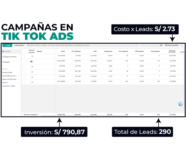- Campañas digitales en TIK TOK ADS
